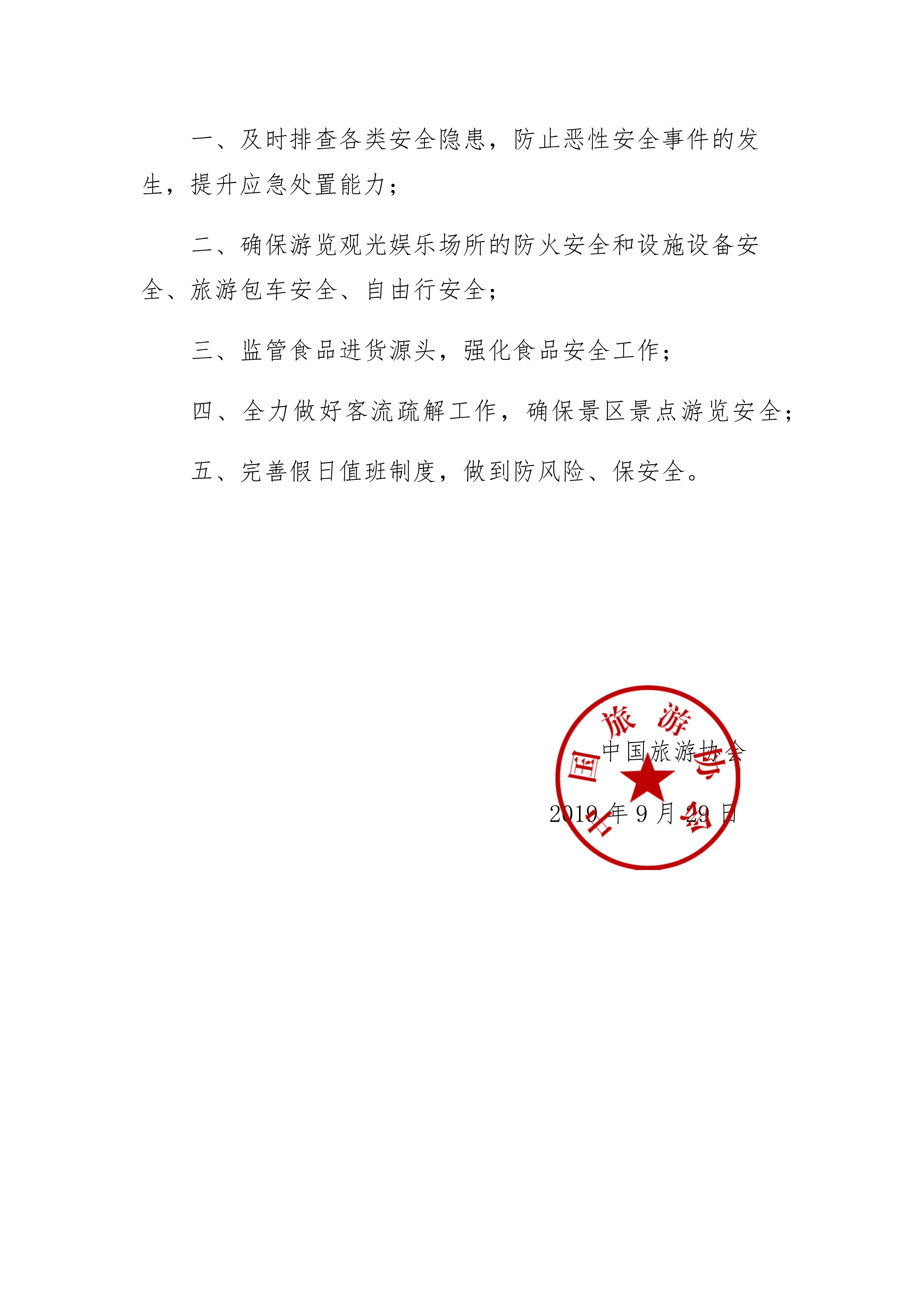 中国旅游协会关于做好2019年国庆假日旅游安全工作的通知