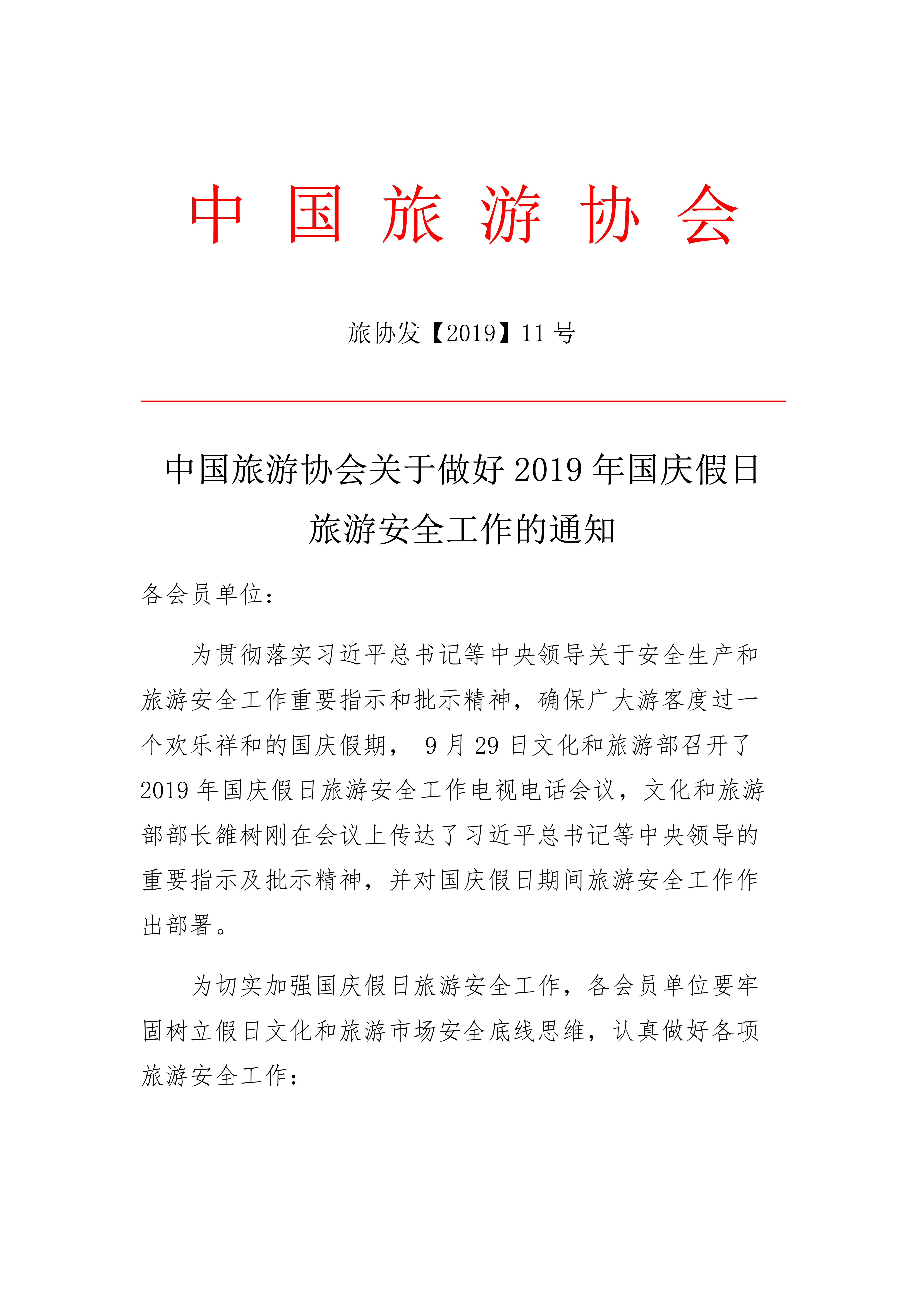 为切实加强国庆假日旅游安全工作,各会员单位要牢固树立假日文化和旅游市场安全底线思维,认真做好各项旅游安全工作:
